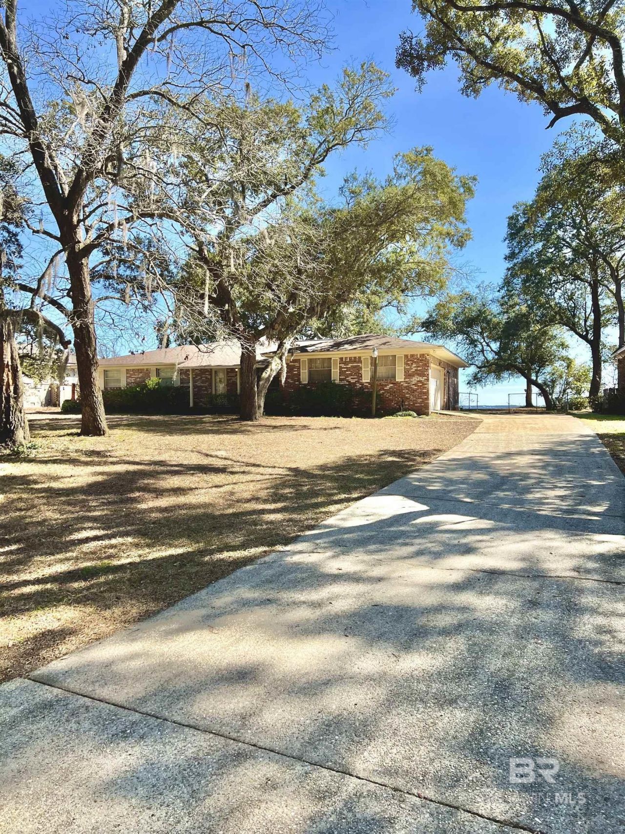 Waterfront Home on Perdido Bay - This neighborhood is special! You'll know it as soon as you arrive under the beautiful oaks and see the panoramic views of Perdido Bay. This waterfront home features 100' of bay frontage, sits high and dry approximately 20' above sea level, and is surrounded by active birds, fish, and wildlife. Not only do you have the water frontage, you can avoid the lines at the public boat launch as you will also own a 1/57 interest in the neighborhood boat launch and common area that sits just a few hundred steps from your front door. You will launch into the calm and protected water of Emanuel Bayou and immediately idle into Perdido Bay which will give you quick access to all of the amazing spots our coastal waters offer. Don't feel like boating? You can fish from the pier or launch a paddle board or kayak from the common area that allows you easy access into the shallows of the bay. The home is 3BR/2BA and is very open. The large main living/dining area is attached to the kitchen giving you an undivided area for dining and entertaining. This area then flows into a massive great-room that was added in the late 90's. This room is approximately 15' x 45', is completely open, and faces the water with all sliding doors giving you almost unobstructed views of the bay. The roof and bulkhead were replaced after Sally. Waterfront homes don't come available in this neighborhood very often. You'll understand why as soon as you arrive. This is a great opportunity to turn these great bones into your dream home! Buyer to verify all information during due diligence.